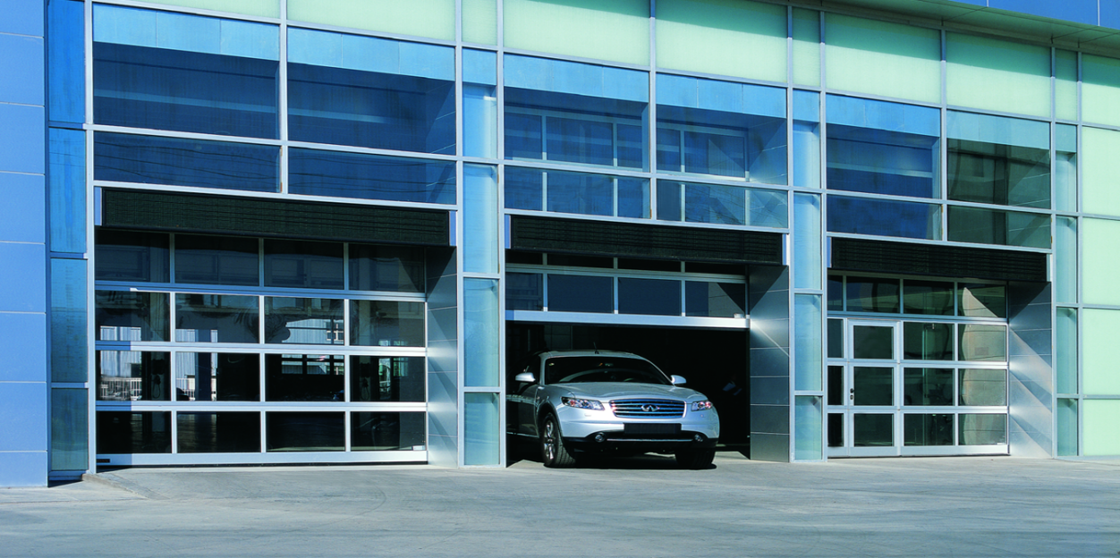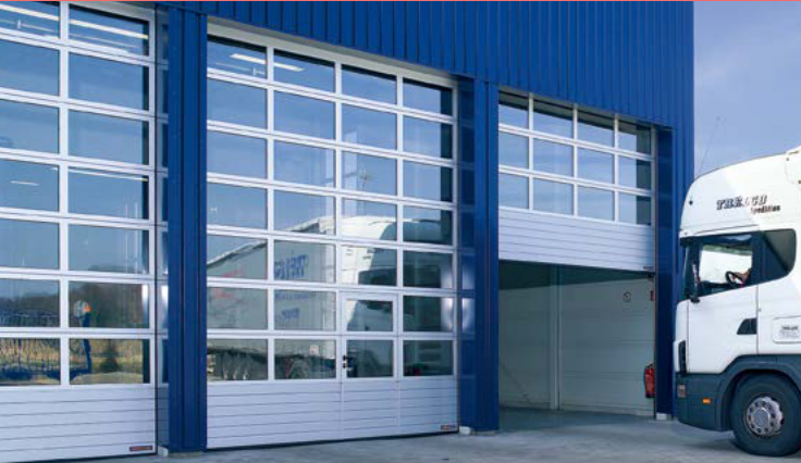 APU 钢铝结合的分节提升门,底板为双层钢质保温门板,底板以上均为透明铝框视窗,既通透明亮,又坚固耐用,适合用在工厂厂房、展厅、汽车4S店等场合。